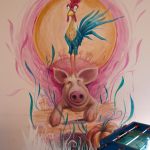 Così come il luogo, anche la maggior parte degli artisti sono stati confermati rispetto all’anno scorso. Quest’anno infatti è stato possibile ammirare un ulteriore contributo artistico alla struttura della fattoria da parte degli ormai già conosciuti: Gianluca Raro, Larva, Errico Di Cerbo, Lume, Salvatore Troiano, Ivan Del Giudice, Sdu e Opium che attraverso la loro arte hanno regalato ancora più magia ad un posto immerso nella natura sannita facendolo diventare ancora di più tappa obbligatoria per gli appassionati di street art e non solo. Per ritornare ai sentimenti di accoglienza e solidarietà che si respirano in quel luogo, quest’anno anche un ragazzo Gambiano Muhammed Cessay ha esordito come artista insieme ad altri tre connazionali, Alh Ebrima Sanyang Lamin Saidy Amir Fadlalah, che insieme formano i The Homebull Boy. L’opera, creata attraverso la tecnica dello stencil, è un tributo alla loro terra d’origine il Gambia rappresentata dal volto di un leone con i colori dello stato africano da dove provengono e da dove sono partiti per l’avventura della vita a fare da contorno. Inoltre, ad essere stato inondato di street art è stato anche un capannone situato nei pressi della fattoria, facente parte dei beni culturali confiscati alla camorra, rimasto ancora inutilizzato ma che ora gode di nuova linfa grazie agli interventi di Raro, Opium e Larva. Alla fine è stato presentato anche il libro, Ortika Big Family, che contiene la storia di entrambe le edizioni e testimonia attraverso foto e citazioni quello che si respirava durante il festival; ovvero la sensazione di star facendo qualcosa per gli altri ritrovandosi allo stesso tempo in un ambiente sereno e amichevole ed il tutto reso ancora più bello dalla tanta street art che chi c’era ha potuto ammirare.