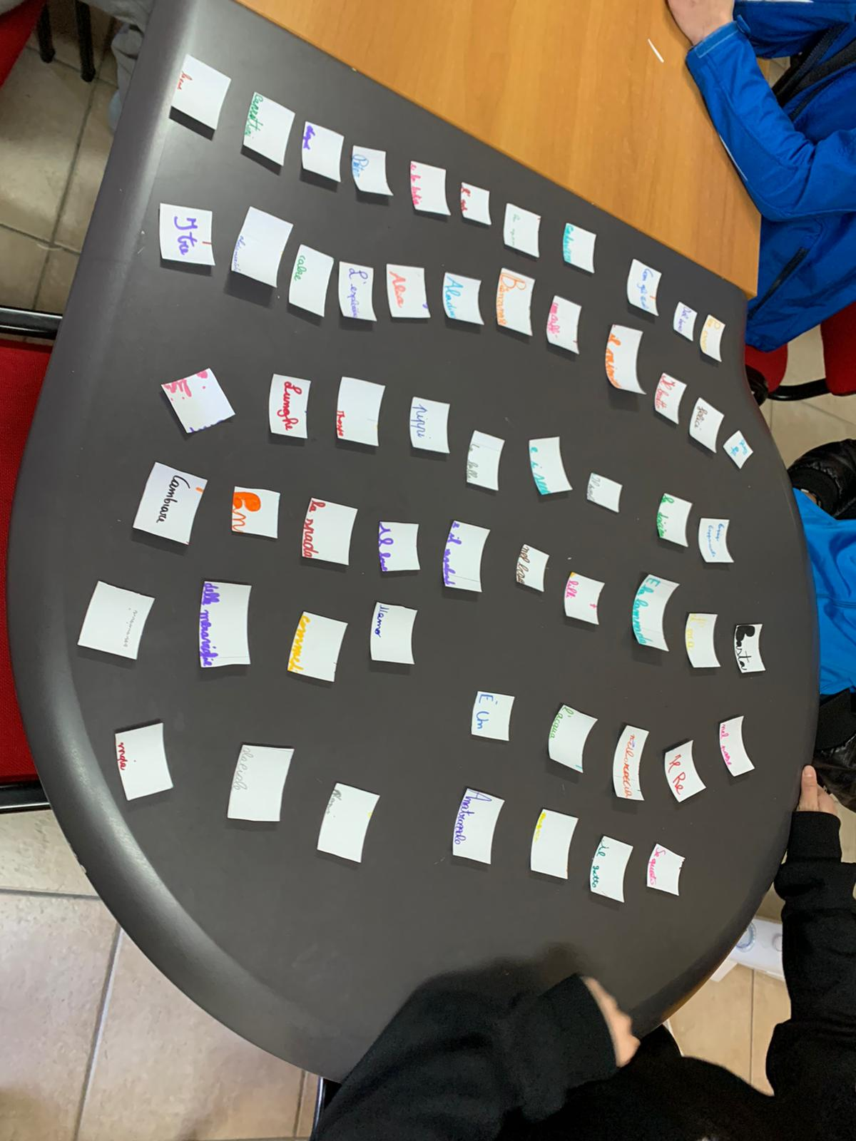 - La prima è “Macedonia di titoli” : su 60 foglietti di carta, vengono scritte diverse parole da dover associare in un breve lasso di tempo per poi giungere alla ricomposizione di titoli di libri, fiabe e film ricchi di importanza. Tra questi “Il Re Leone”, scelto come “titolo magico” in quanto fautore di una rilevante riflessione, a seguito di un’approfondita lettura, a riguardo di alcune delle citazioni più importanti che tutti noi dovremmo sempre tenere a mente;