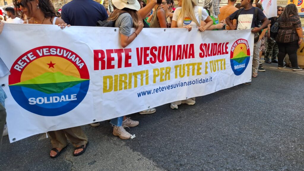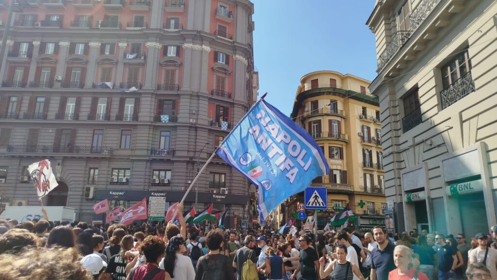 Una folla oceanica che ha sfidato il grande caldo, ed ha avuto la meglio. Mentre la testa del corteo raggiungeva il Porto, il corteo copriva ancora tutta la via De Pretis, per poi terminare su Corso Umberto I, dove gli ultimi manifestanti si trovavano all’altezza di via Mezzocannone. Presenti davvero tutte le realtà che da sempre si impegnano a sostegno della causa palestinese: Dall’USB ai movimenti studenteschi di Link e del Collettivo Autoorganizzato Universitario (CAU), passando per Medici per Gaza, Medici Senza Frontiere, Movimento Transfemminista, Docenti di varie scuole, A.N.P.I., Partito dei C.A.R.C., Rifondazione Comunista, Partito Comunista, Potere al Popolo, Partito Comunista Rivoluzionario e naturalmente, la Rete Solidale Vesuviana, con Melagrana, di cui questa testata è parte attiva.